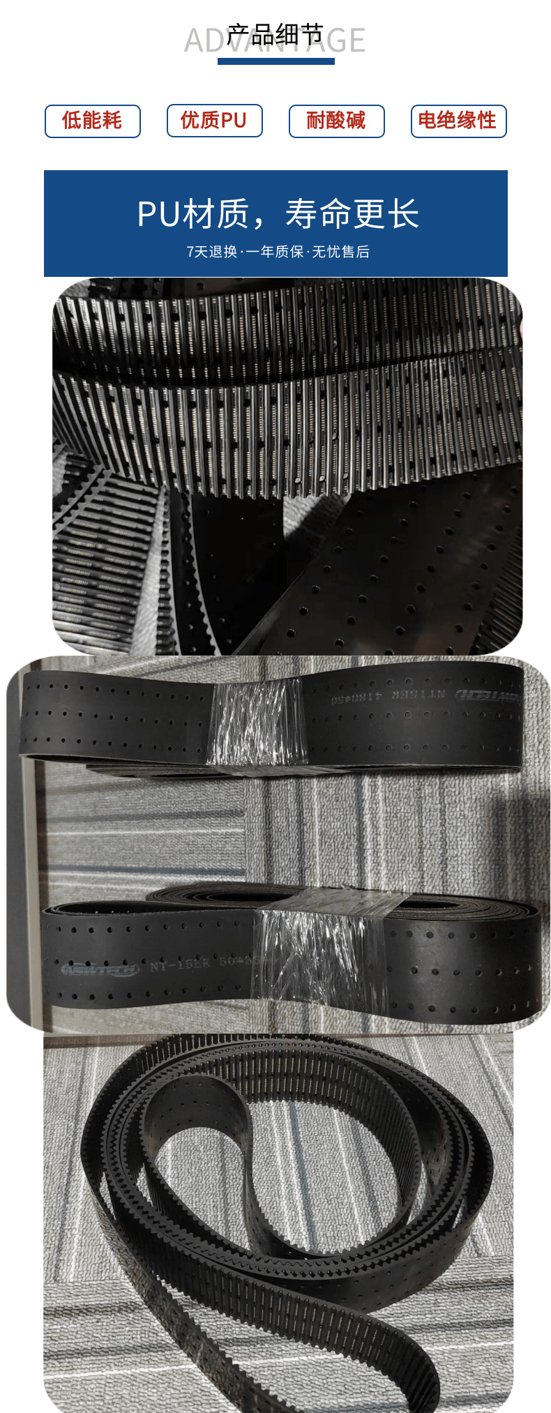2.聚氨酯同步帶的柔性更好,而且不易變形!重量也比較輕